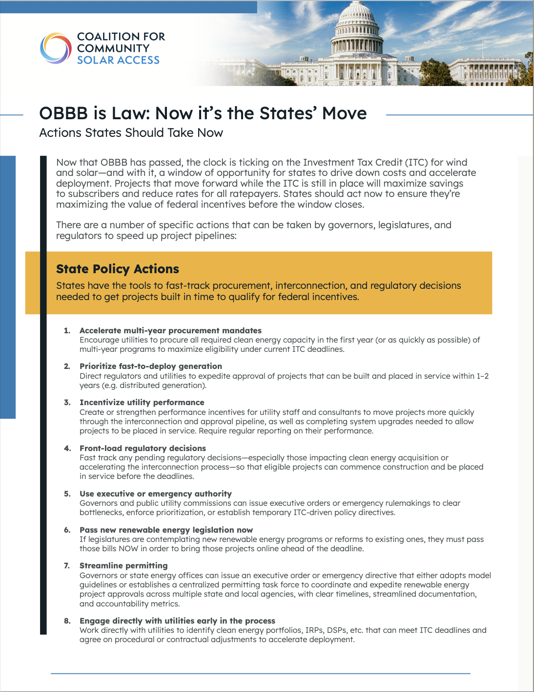 Key Elements of CCSA’s Model Legislation for Community Solar